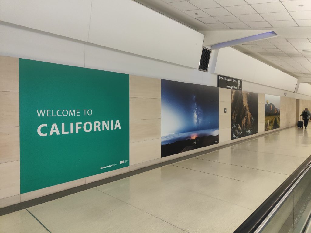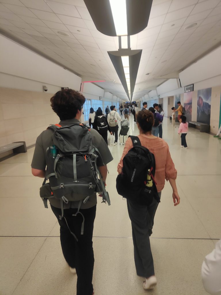 订的青岛中转首尔飞旧金山的机票,7月8日上午从淄博开车去青岛,13点青岛起飞,15:35左右到首尔仁川机场,20:55飞旧金山,16:00到旧金山国际机场,正好办理租车、入住、采购相关,时间点正合适。