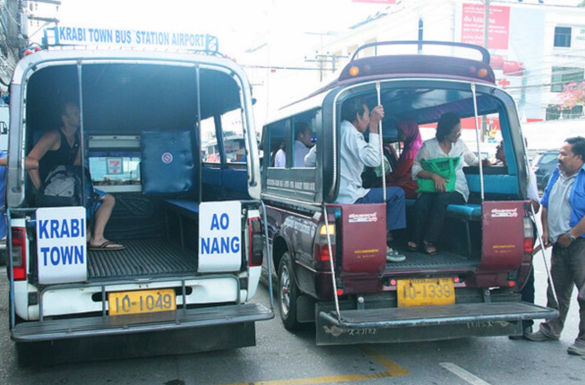 官方的直达车,只能6点统一发车,现在时间尚早,无意中在酒店门口看到bus可以到达甲米镇夜市,正看着,正好有bus到,立马决定坐bus早点去,哈哈,bus就是这种双条车。